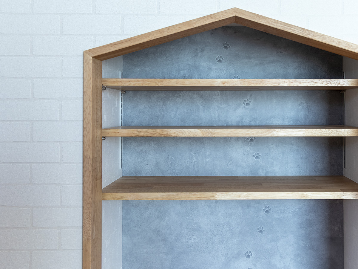 ご家族の一員である猫ちゃんのためのグッズ専用棚。