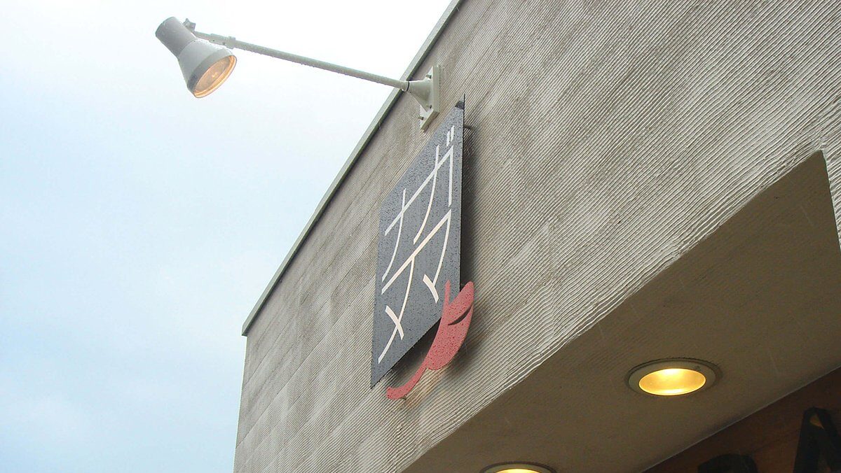 外観の分かりやすさと、ユニークな形をいかしてエントランス上部にサインスペースを設け、オーナー様お気に入りのトライデザインロゴ&マークでお客様をお出迎え!